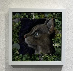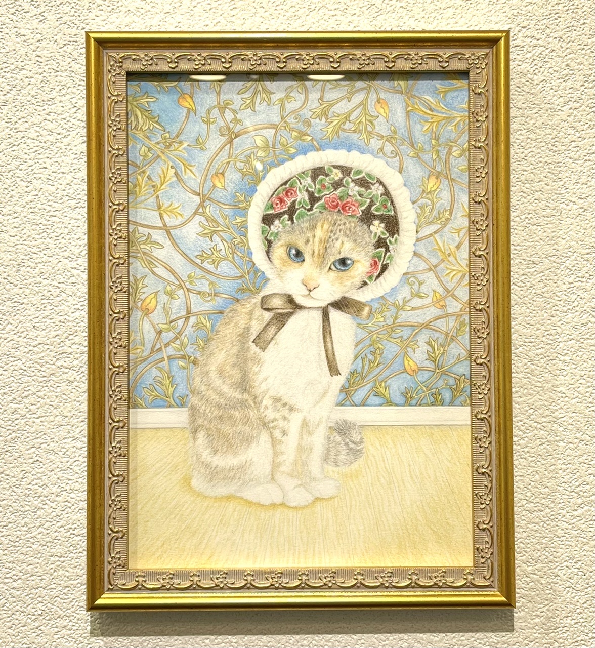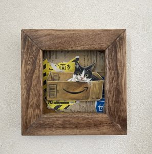 ChiHaru はこねこ /2022年制作 アクリル・段ボール/額付 /SOLD 売約済み