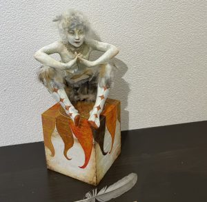 kian 「時を囀る」/2022年制作 石塑粘土・アクリル・台座付 ¥88,000-(税込)