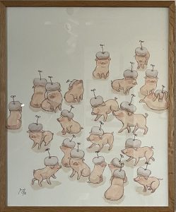 ©︎中谷理恵 アンテナこぶた 360×440mm 水彩紙、アクリル、インク
