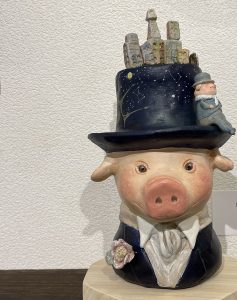 ©︎中谷理恵 豚氏の帽子 140×270mm(石塑粘土、アクリル)
