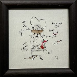 ©︎中谷理恵 カワウソシェフ (水彩紙、アクリル, 割り箸ペン)/SOLD売約済み