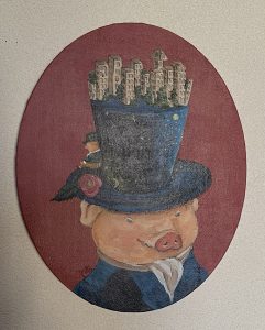 ©︎中谷理恵 豚氏の帽子 235×300mm変形 (キャンバス、アクリル)