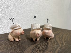 豚を描く作家、中谷理恵氏。今回は造形作品と絵画の展示会です。独特の世界観の絵画、素朴で愛らしい造形、どうぞお楽しみください。