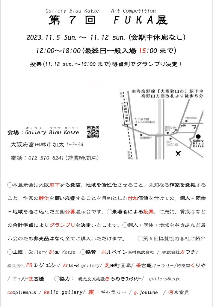 2023.11.5.(日)→11.12.(日) 第7回FUKA展 ※会期中休廊なし/会期2日目より通販有