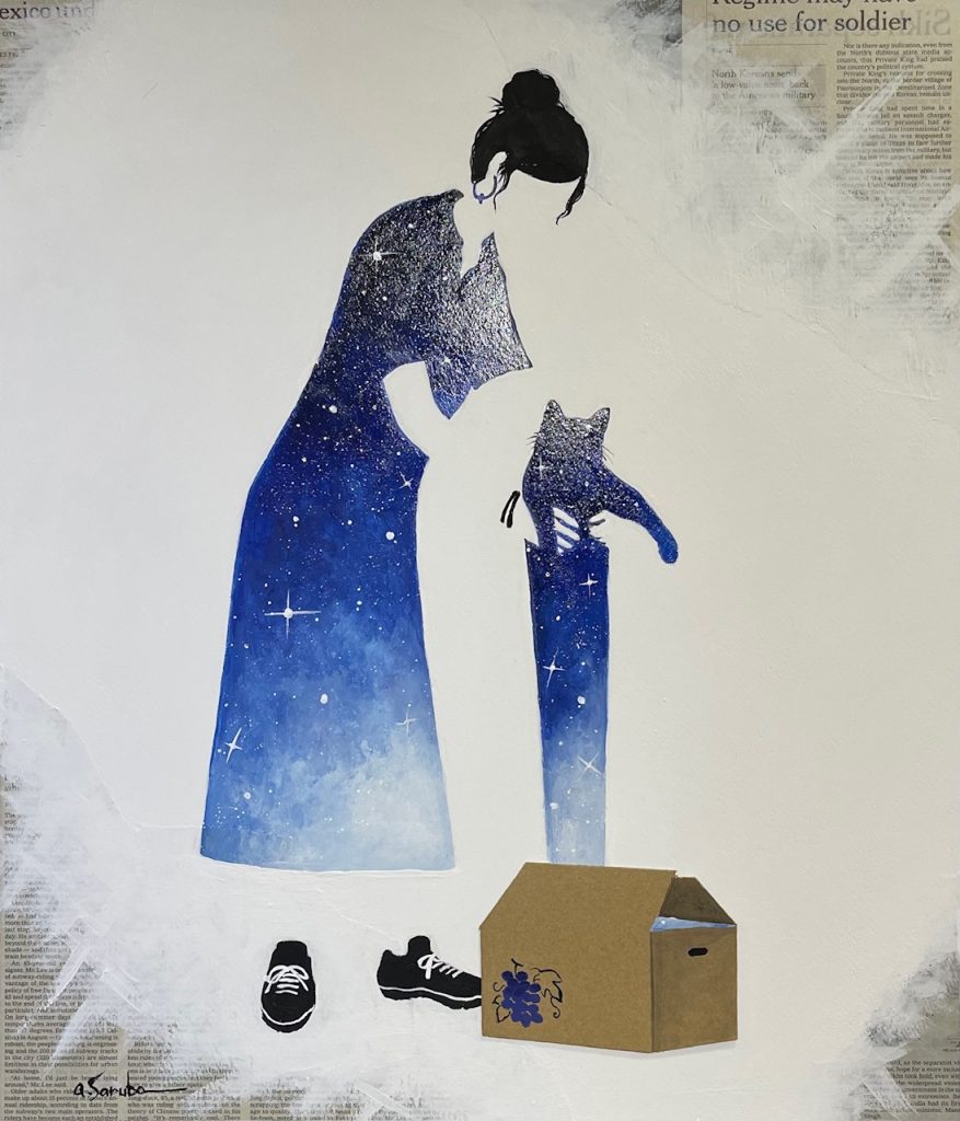 〈選考理由〉支持体を段ボールとし、段ボールの特徴をフルに利用した絵画を制作するアーティスト。今回の出品作は捨てられた新聞紙や段ボールの風景画だが、地面の段ボールがブロック塀に覆い被さっているような不思議な構図。しかし特に猫を題材とした作品は秀逸で、彼らの目線や表情の捉え方にはアーティストの猫好き度合いを感じる。