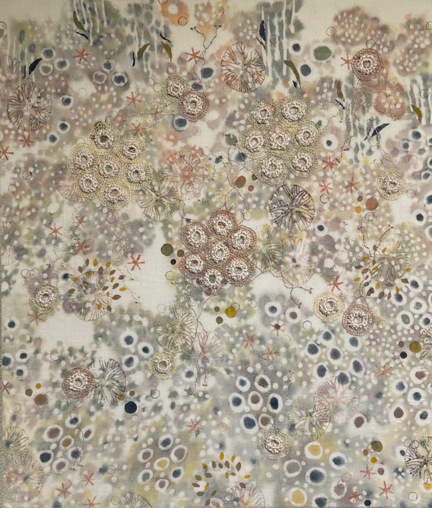 城野真由「Underground network」(綿布・ベンガラ染料・藍染糸・絹糸・刺繍糸/2024年制作) ¥55,000-(税込)