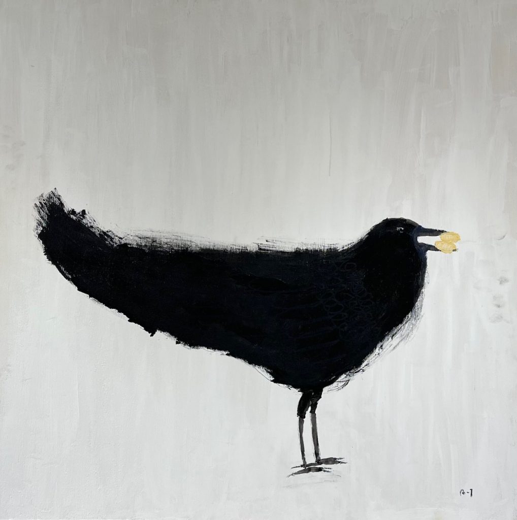 Q-enta「crow」(ジェッソ・アクリル・鉛筆・ダーマグラフ/2024年制作) ¥33,000-(税込)