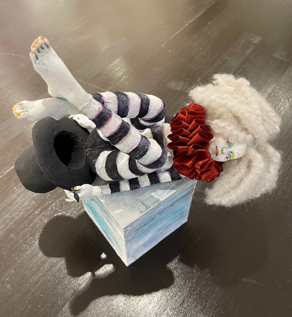kian 「雨の日は雲の上で」(石塑粘土・アクリル・羊毛・リボン 他/2024年制作) ¥99,000-(税込)