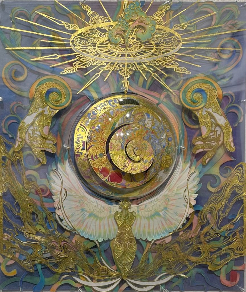 カメイミチヨ「はじまりの気息(きそく)」(和紙・色鉛筆・アクリル/2024年制作) ¥330,000-(税込)