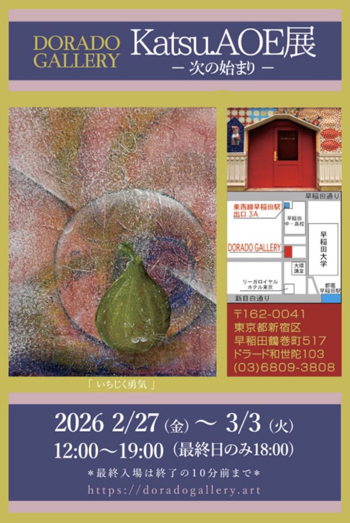 📍2026.02.27.→03.03. ギャラリスト&オーナー画家 Katsu.AOE個展「次の始まり」@ドラードギャラリー(東京新宿区早稲田)(終了しました)