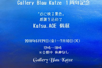 前略。 昨年七夕の日にオープンしました Gallery Blau Katzeは、2018年7月7日に 1周年を迎えることになりました。...