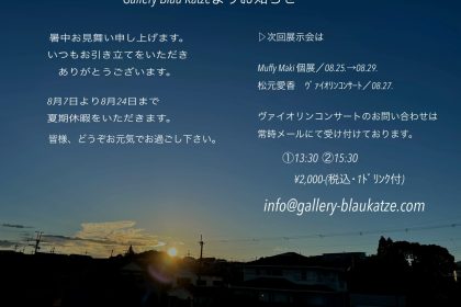 Gallery Blau Katzeよりお知らせ いつもご支援をいただきありがとうございます。 8月7日(月)より、8月...